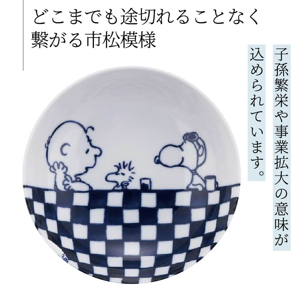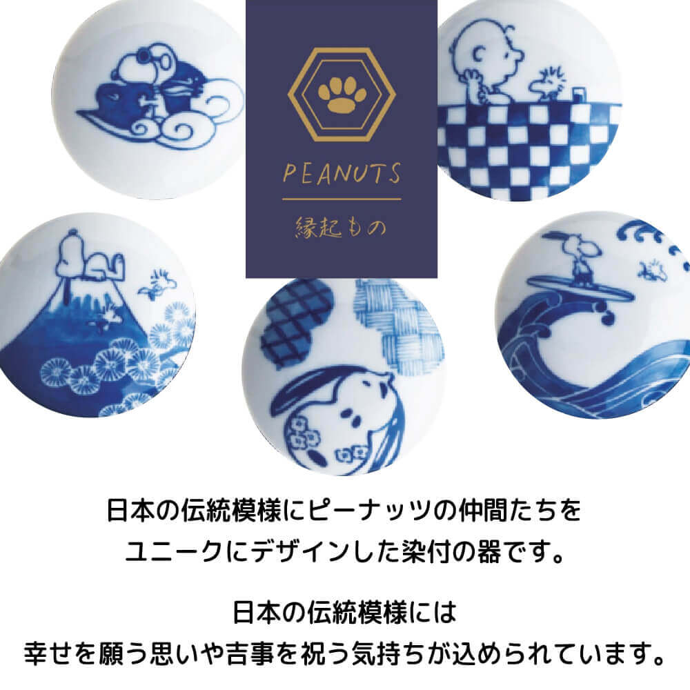 日本の伝統文様にピーナッツの仲間たちをユニークにデザインした染付(そめつけ)の器です。