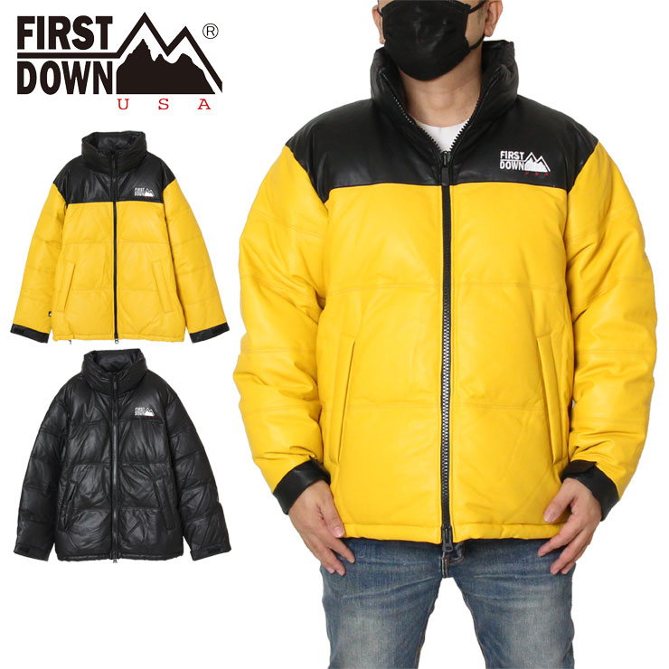 【お買い物マラソンで使える10%OFFクーポン配布中】ファーストダウン FIRST DOWN レザーダウンジャケット メンズ ブランド レディース 大きいサイズ おすすめ ラムナッパレザーダウン 642505C イエロー ブラック M L XL