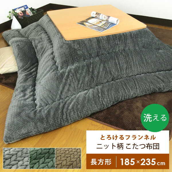 こたつ布団 こたつ掛け布団 長方形 185×235cm フランネル ニット柄 とろける 洗えるこたつ布団 こたつふとん 炬燵布団 掛布団 掛けふとん あったか 無地 シンプル 北欧 かわいい 薄掛け布団 【こたつ布団】 【送料無料】