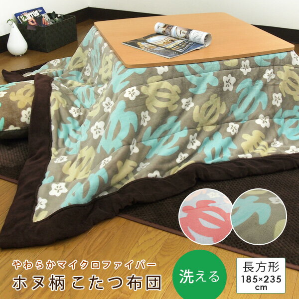 こたつ布団 こたつ掛け布団 長方形 185×235cm マイクロファイバー ホヌ柄 やわらか 洗えるこたつ布団 こたつふとん 炬燵布団 掛布団 掛けふとん あったか 無地 シンプル ハワイアン柄 ウミガメ 南国柄 ハイビスカス 北欧 かわいい 薄掛け布団 【こたつ布団】 【送料無料】