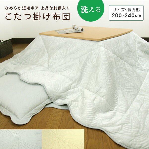 こたつ布団 こたつ掛け布団 長方形 200×240cm やわらかボア 刺繍入り キルト こたつふとん 炬燵布団 マイクロファイバー 洗える 掛布団 掛けふとん 掛けぶとん あったか 無地 シンプル 北欧 【こたつ布団】 【送料無料】
