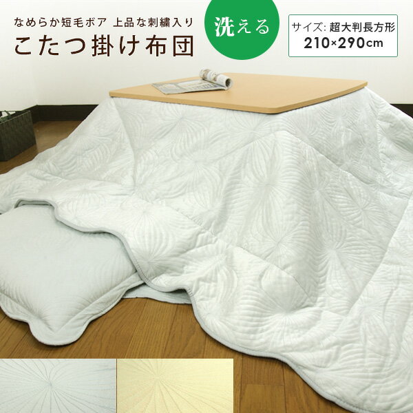 こたつ布団 こたつ掛け布団 超大判長方形 210×290cm やわらかボア 刺繍入り キルト こたつふとん 炬燵布団 マイクロファイバー 洗える 掛布団 掛けふとん 掛けぶとん 特大 あったか 無地 シンプル 北欧 【こたつ布団】 【送料無料】